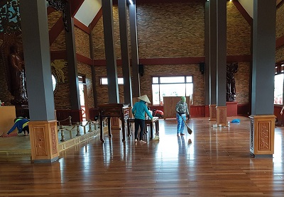 Công trình chùa Di Đà sử dụng sàn gỗ Căm Xe Lào quy cách 15 x 90 x 1050 mm, được sàn gỗ CQ cung cấp và lắp đặt tháng 9/2017 tại huyện Bảo Lâm, tỉnh Lâm Đồng. Do đặc thù vị trí địa lý là thời tiết ẩm thấp, mưa nhiều nên dễ bị giãn nở do đó sàn gỗ CQ phải chọn lựa đội thợ lắp đặt chuyên nghiệp, có tay nghề cao. Chùa Di Đà là một ngôi chùa lớn, với chính điện dài hơn 21 m, rộng 11m, toàn bộ lắp đặt gỗ Căm Xe Lào, ở giữa lối vào sử dụng sàn gỗ Gõ Đỏ Lào quy cách 15 x 90 x 900mm tạo điểm nhấn theo thời gian.